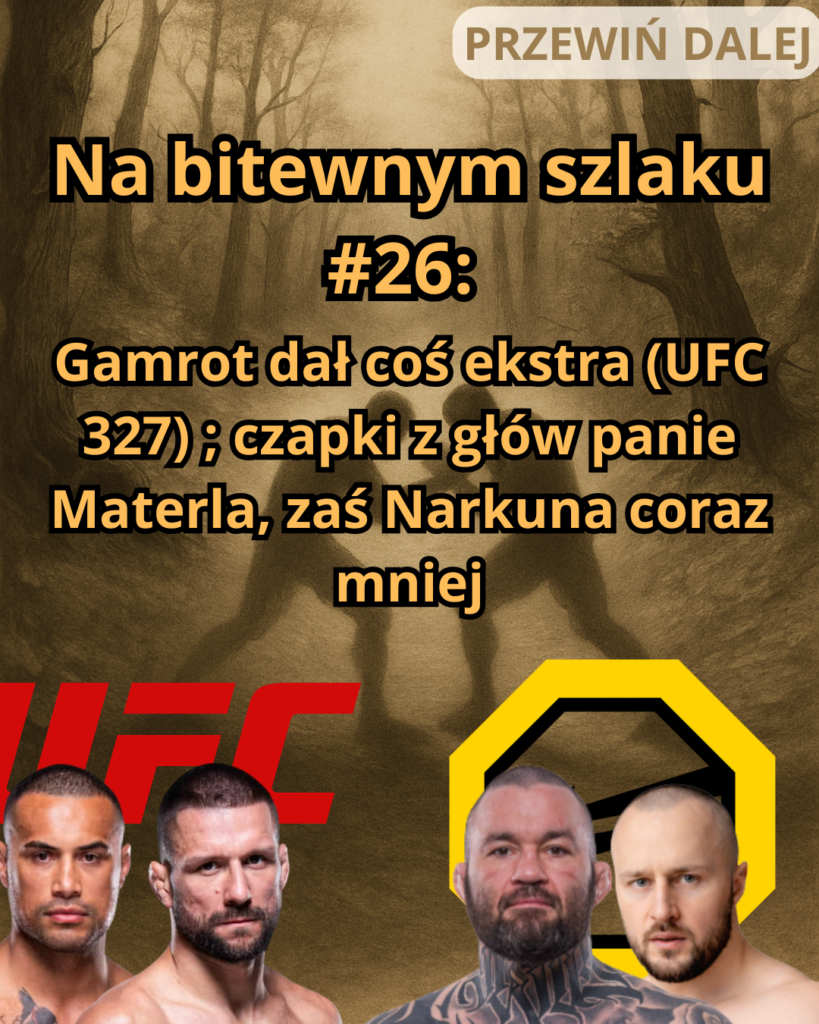 Niech punktem wyjścia do „Gamerowych” rozważań będzie walka. Od początku Polak umiejętnie zarządzał tym, co dzieje się w klatce, wykluczając jakiekolwiek atuty Ribovicsa. Oczywiście, jak to w przypadku Gamrota bywa, obliczał swoje działania na cel o nazwie implementacja grapplingu. Zanim jednak do zapasów, to kilka słów o płaszczyźnie stójkowej. Polak był mobilny, krążył po klatce, dobrze pracował lewym prostym, wszystko przyjmował na blok. Tym, co mi imponowało, były pozorowane próby obaleń. Argentyńczyk obniżał pozycję, a kiedy wstawał, częstowano go ciosami. Kiedy już Gamer zaprzęgał swój ulubiony element, był w nim aktywny. Nie dość, że wykazywał się lepszą niż zwykle kontrolą, to zmieniał pozycje, szukając optymalnej drogi do poddania. Generalnie rzecz ujmując, na przestrzeni całej batalii Gamrot miał świadomość wysuwanych wobec niego oczekiwań. Zionął fighterskim ogniem od pierwszego do ostatniego gongu.